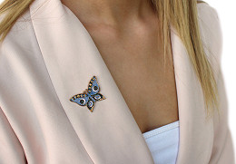 Малката брошка/значка във формата на пеперуда е украсена с цветен емайл. Тя ще внесе свежест и цвят във всяко облекло. Стои идеално на палто, яке или шал, но може да бъде и интересен елемент на чанта или шапка. Има семпло закопчаване с една точка .