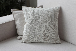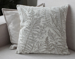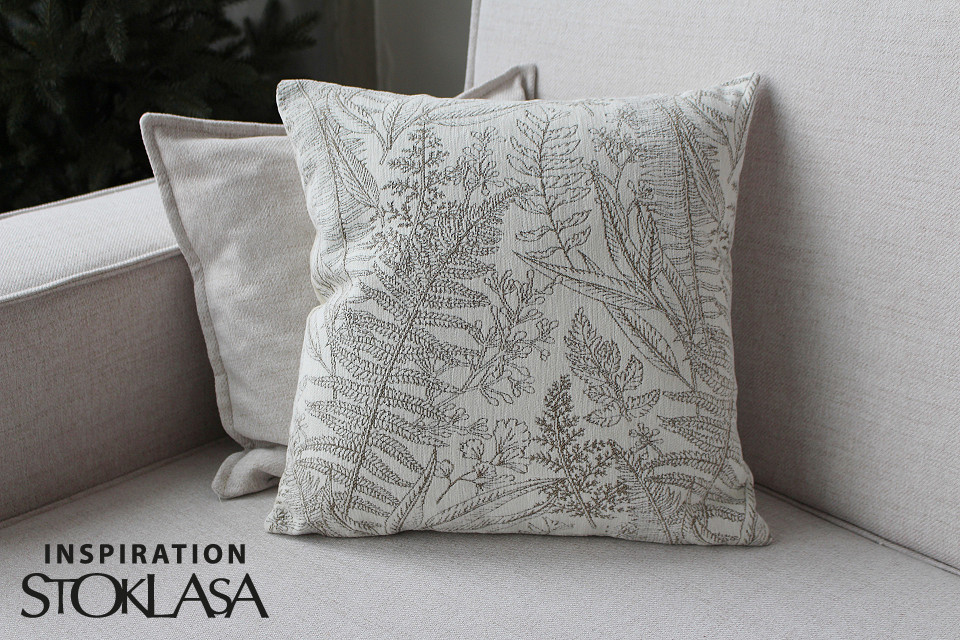Калъфката за възглавница от шенил е идеален избор за тези, които искат бързо и ефективно да освежат хола, спалнята или друг ъгъл на дома си. Предната страна е декорирана с мотиви от папрат и растения , а задната страна е едноцветна, кадифена. Можете лесно да я комбинирате с различни интериорни стилове - от минималистичен до рустик. Закопчава се удобно със скрит цип.