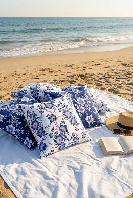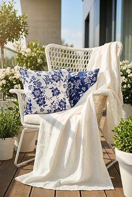 Памучното платно е декорирано с цветен принт. Наподобява т.нар. blueprint. Подходящо е за шиене на покривки за маса, подложки за хранене, пердета, чанти, спално бельо и др.