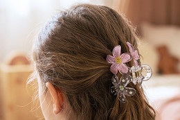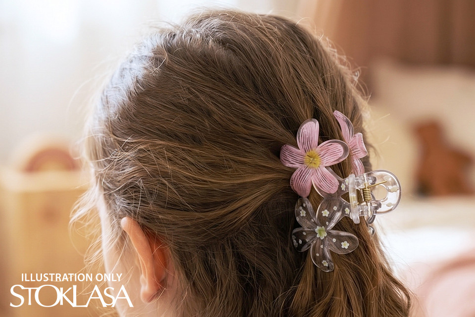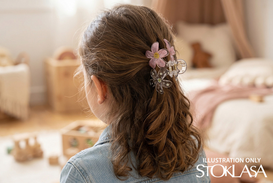 Фибата за коса с цвете е елегантен аксесоар, който ще придаде романтичен вид на прическата ви. Независимо дали отивате на работа, среща с приятели или романтична вечеря, тя ще подчертае вашата женственост и елегантност. Тя е прозрачна с цветен принт , създавайки привличаща вниманието прическа за нула време. Задържа се точно на мястото си благодарение на здравия си захват и дългите си зъбци.